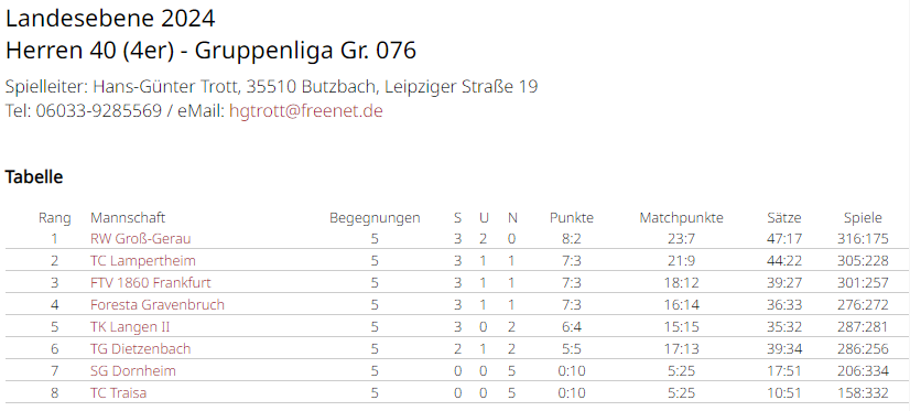 Tabelle: Herren 40